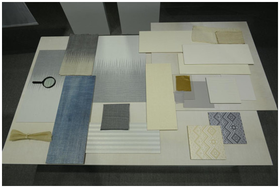 在对于“传统材料色彩与肌理的研究”整个过程中,诺贝尔的研发及技术水平超乎了他的想象,在一个月的时间里完成了“布-染-织-绣-线”5个系列产品的打样,在“脑力激荡室”里观者可以看到5 大块‘面料-瓷砖’灵感氛围板,所有元素源于华夏文明,却十分国际化和现代感。