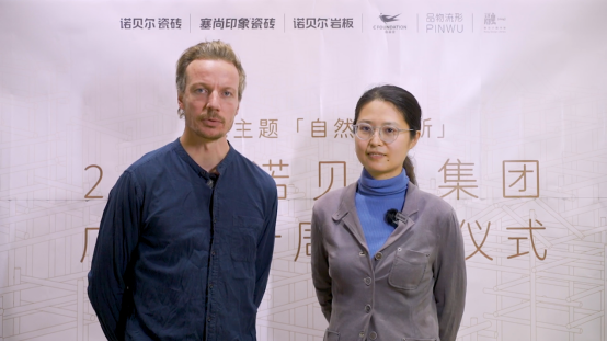 最后,杭州诺贝尔陶瓷有限公司总裁周国跃先生连线致辞,对到场的设计师、与会嘉宾、合作伙伴们一直以来的支持表达了衷心感谢,同时他表示:2018年诺贝尔与创基金、融设计图书馆一起启动了长期的“传统材料色彩肌理研究”计划,希望通过长期的基础研究带给设计师更多的创作营养,并逐渐形成中国的设计美学。今年,诺贝尔携2021年灵感系列新品“编”和“影”系列岩板来到现场,见证了中国传统色彩肌理在现代应用中的更多可能性。未来,诺贝尔希望通过与创基金、融设计图书馆的深入合作,为不同领域和文化背景的设计师、艺术家提供更有内涵的创作素材,真正推动中国当代设计与人居生活的发展。